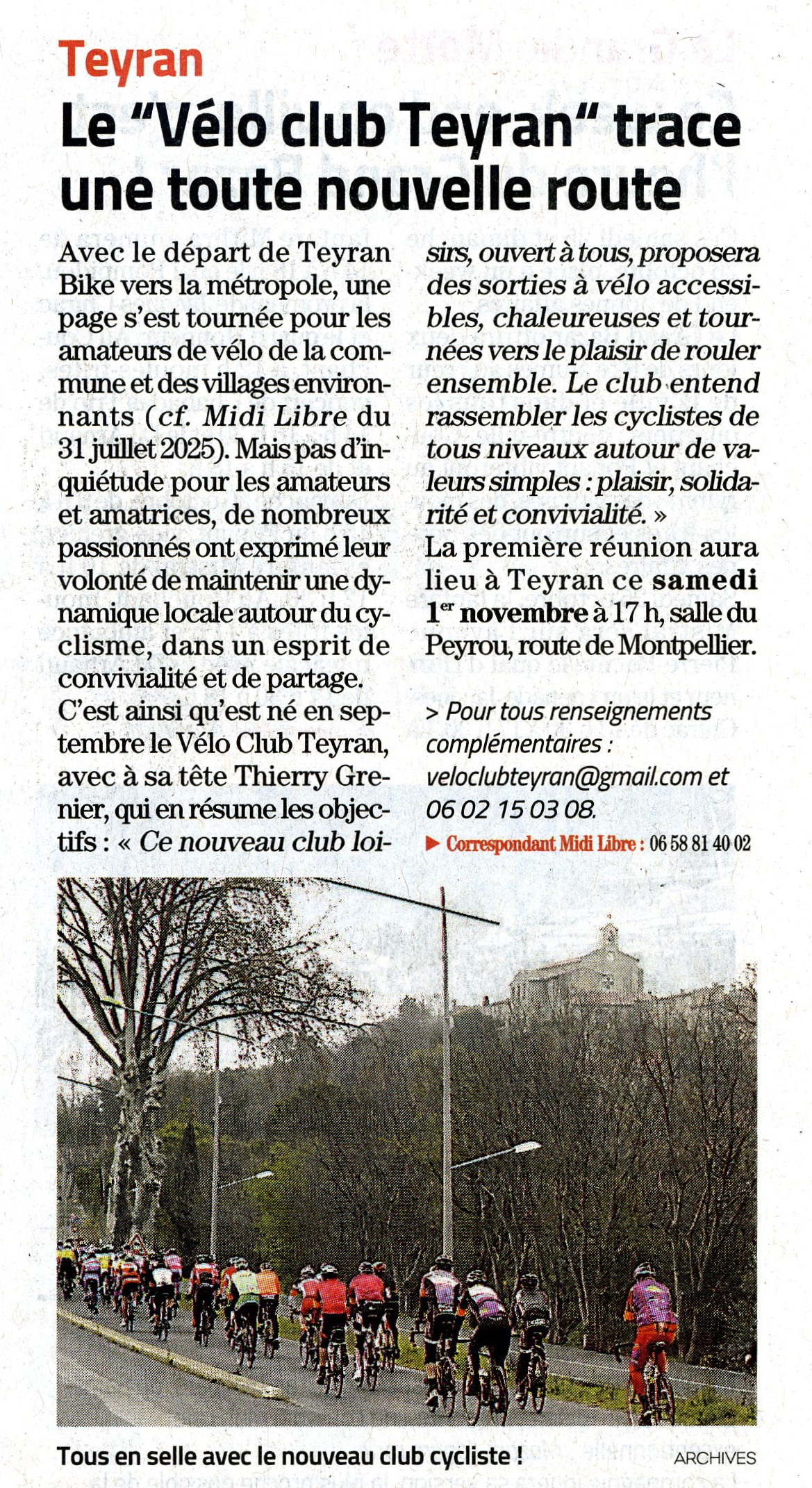 Le dossier d’affiliation a été remis au président en souhaitant au club la bienvenue au sein du CoDep 34 et de la FFCT.